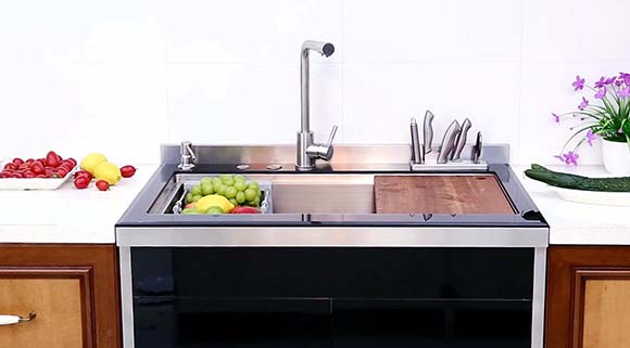 集成水槽將凈水處理系統、熱水供應系統、垃圾處理系統,刀架、皂液器、菜板、瀝水籃等功能進行人性化設計,巧妙地和水槽結合在一起,既解決了傳統水槽空間使用率低的難題,而且整體布局科學合理,外型小巧精致,難怪集成水槽會成為廚房新寵。集成水槽價格如何?集成水槽的缺點有哪些?下面就一起了解集成水槽知識百科,感受廚房“槽”流。
