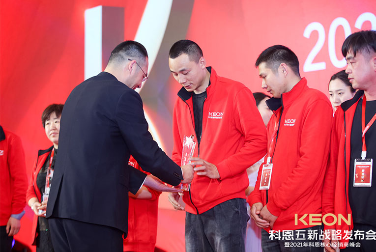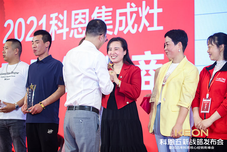 科恩電器一路披荊斬棘,成功實現了一輪又一輪銷量的突破,這一切的成果都離不開終端經銷商的努力與付出。晚宴現場對科恩電器優秀經銷商進行了表彰獎勵,頒發了2020年度科恩電器優秀專賣店、2020年度科恩電器優秀經銷商、2020年度科恩電器杰出經銷商、2020年度科恩電器卓越經銷商、2020年度科恩電器功勛經銷商等在內的多項大獎,公司高管上臺授予榮譽。