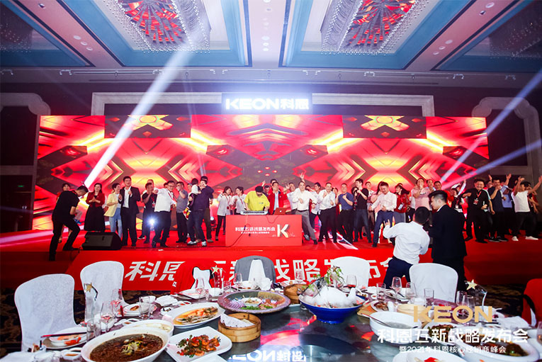 紅衣舞者魚貫而入,精彩鼓舞氣勢恢宏,科恩五新戰略發布會晚宴環節熱烈開場。科恩電器為全國經銷商、媒體伙伴準備了豐盛的答謝晚宴,精致的晚餐、炫目的樂隊表演將晚宴推向了新高潮。