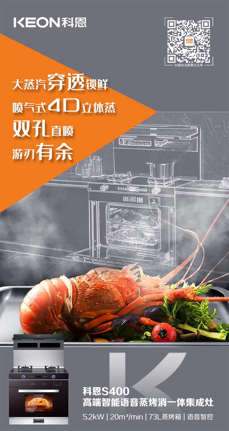 今天,給大家推薦一臺(tái)專(zhuān)治“懶人綜合癥”的集成灶,集成灶十大品牌、廚電行業(yè)十大品牌科恩S400變頻大吸力蒸烤消一體集成灶,上爆炒,下蒸烤,普蒸、強(qiáng)蒸、嫩烤、風(fēng)烤等各種模式一應(yīng)俱全,三分手藝,七分火候,蒸烤烹炸,美食的靈魂與火候區(qū)分不開(kāi),文火均勻,大火猛烈,多種火力調(diào)節(jié)讓廚房小白們也能輕松搞定美食,蒸烤箱只需將食材準(zhǔn)備好放進(jìn)蒸烤箱,選好模式以及對(duì)應(yīng)的溫度、時(shí)間,美食就能信手拈來(lái)。