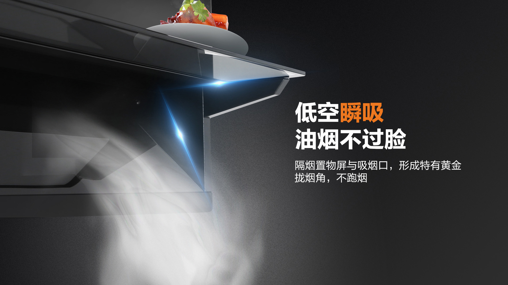 科恩平板煙機6210降低吸煙距離,采取低空爆吸,讓油煙在鍋口就被吸走!特制的導煙置物板,更是阻絕油煙向上跑的可能,徹底做到油煙不過臉。且在導煙同時,還能置物,烹飪時隨手置放的調味品有了好去處!
