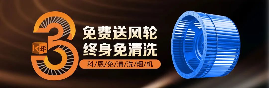 科恩電器行業率先提出3年免費送風輪服務,徹底解決殘余油脂油污問題,真正實現煙機終身免清洗!