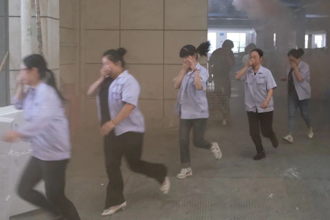 防火警報(bào)拉響,科恩全體員工迅速捂住口鼻,彎著腰,按消防疏散導(dǎo)圖轉(zhuǎn)移至安全區(qū)域,整個(gè)演練井然有序。