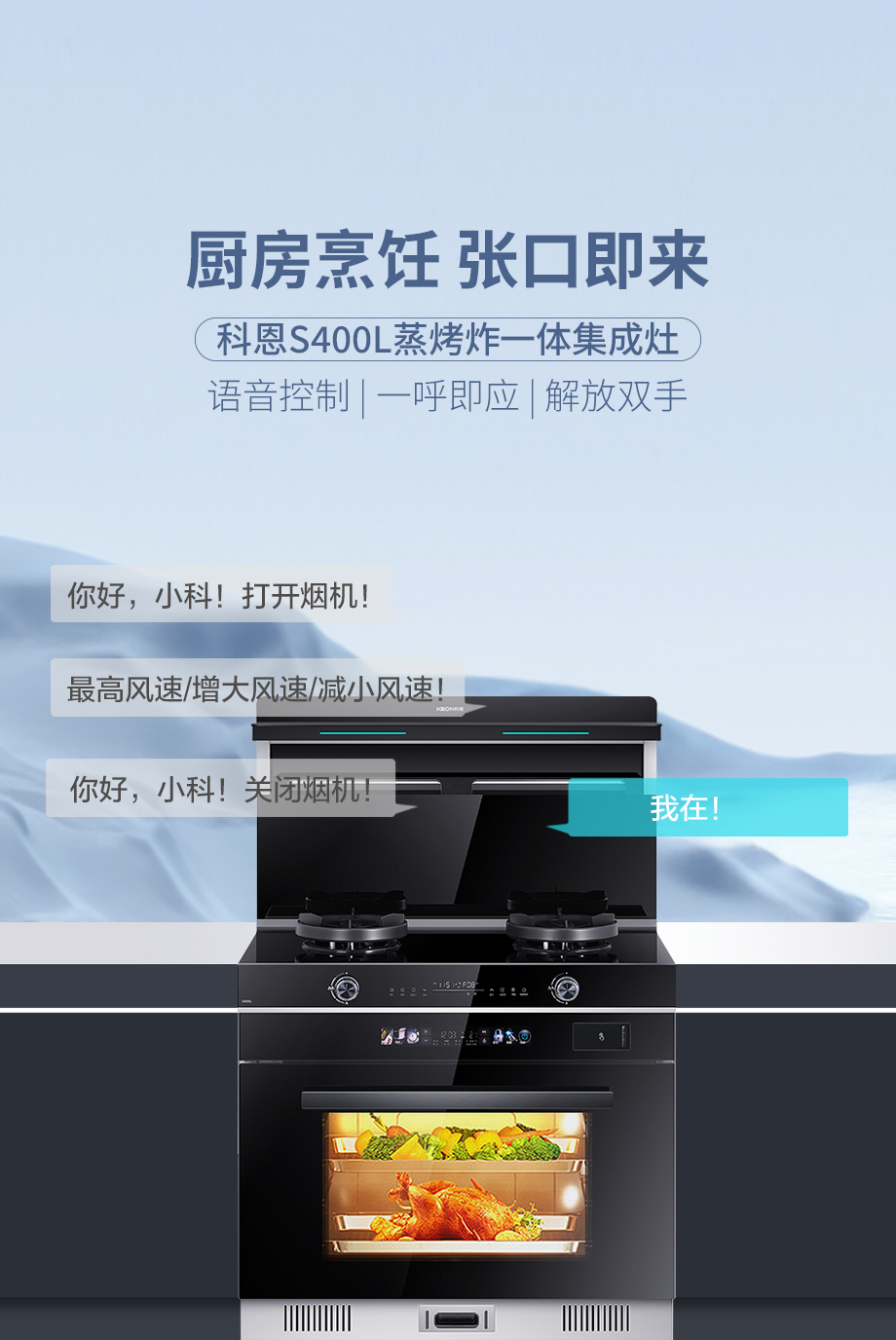 廚房烹飪,張口即來一句你好小科開啟一天烹飪生活S400L內置語音控制一呼即應真正解放雙手