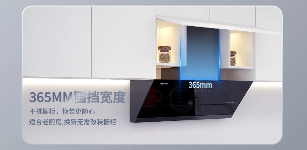 首先,其機(jī)身超薄,換裝免改這一特點(diǎn),對于老廚房來說簡直是一大福音。無需對廚房進(jìn)行大規(guī)模改造,就能輕松安裝。365MM圍擋寬度,不挑櫥柜,換裝更隨心。無論你的櫥柜尺寸如何,科恩5200超薄油煙機(jī)都能完美適配,讓你的廚房改造更加順利。