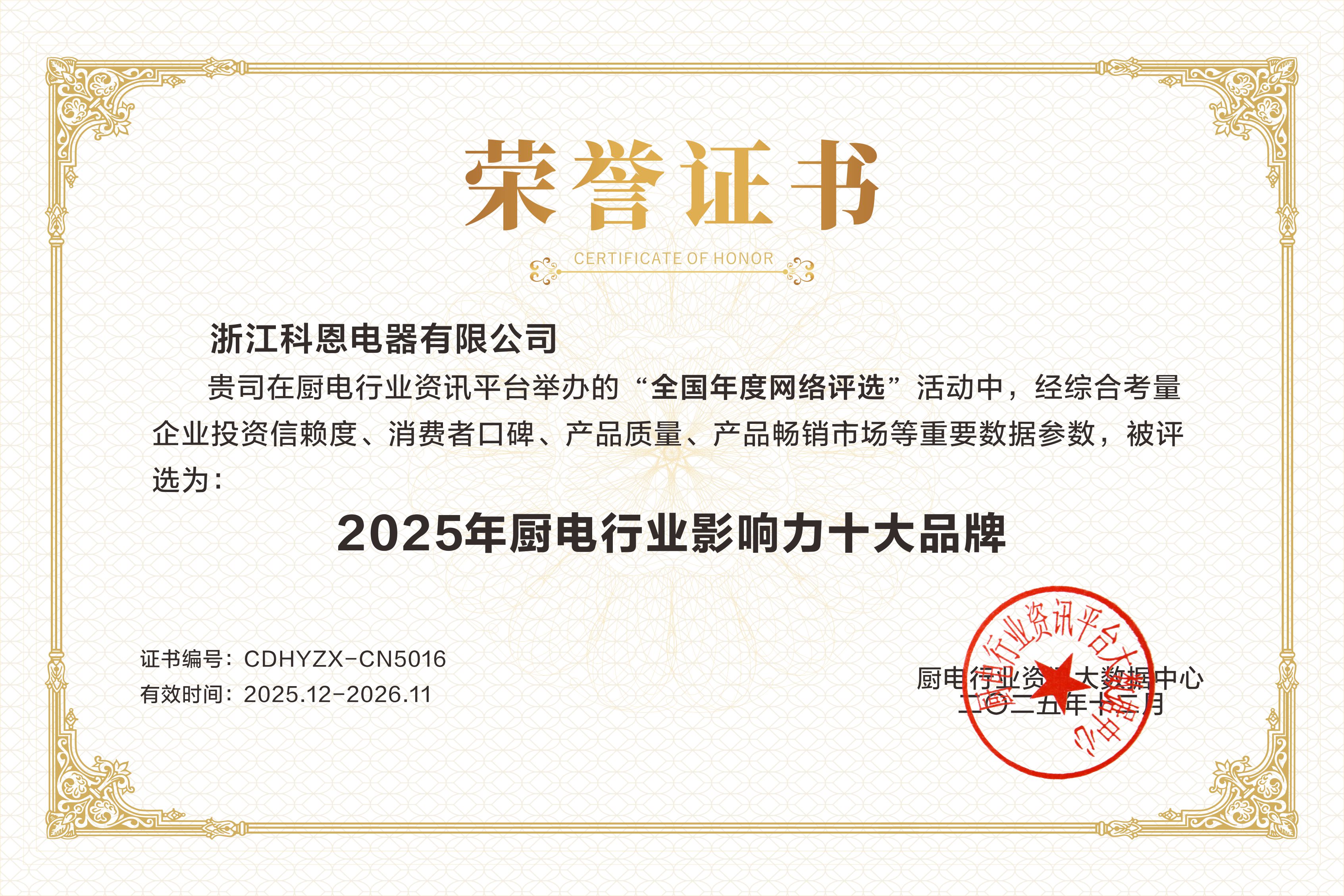 每一次獲獎(jiǎng),都是對(duì)過(guò)去的總結(jié),更是對(duì)未來(lái)的承諾。科恩電器感謝每一位用戶的信賴與選擇,感恩行業(yè)伙伴的認(rèn)可與同行。站在新的高度,科恩將承載這份榮耀與期待,繼續(xù)秉持匠心與創(chuàng)新精神,不僅致力于提升中國(guó)家庭的廚房生活品質(zhì),更愿與行業(yè)一同成長(zhǎng),共同推動(dòng)廚電產(chǎn)業(yè)邁向更高水平的發(fā)展征程。