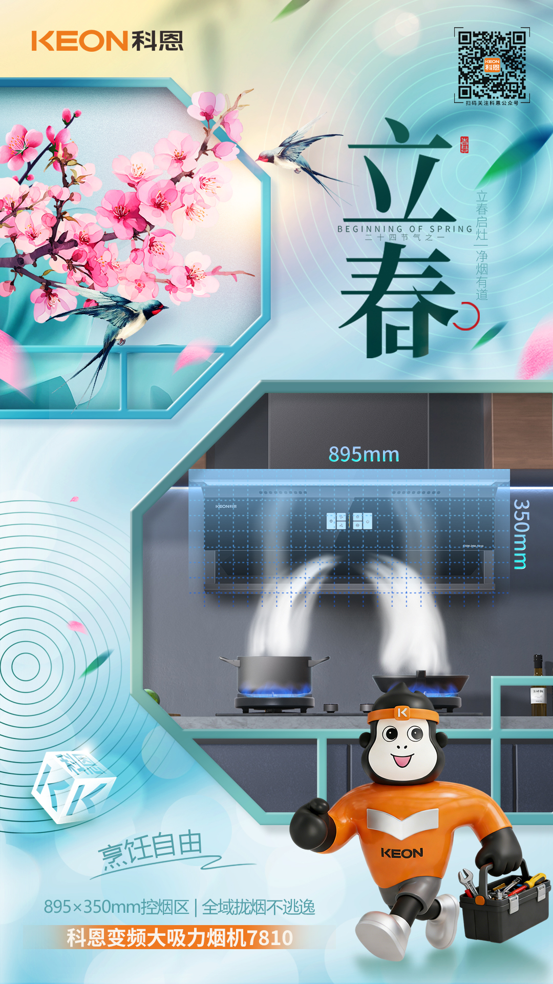 立春啟灶,凈煙有道。新綠破寒時,廚香伴清歡,科恩煙機(jī) 7810,以立春煥新之姿,重構(gòu)「無煙廚房」的烹飪美學(xué),讓每一次掌勺都成為自由呼吸的享受。