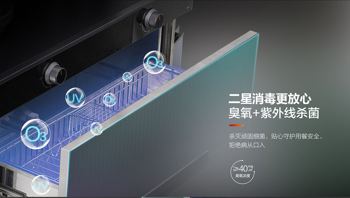 120L大容量消毒柜,采用臭氧與紫外線雙重消毒