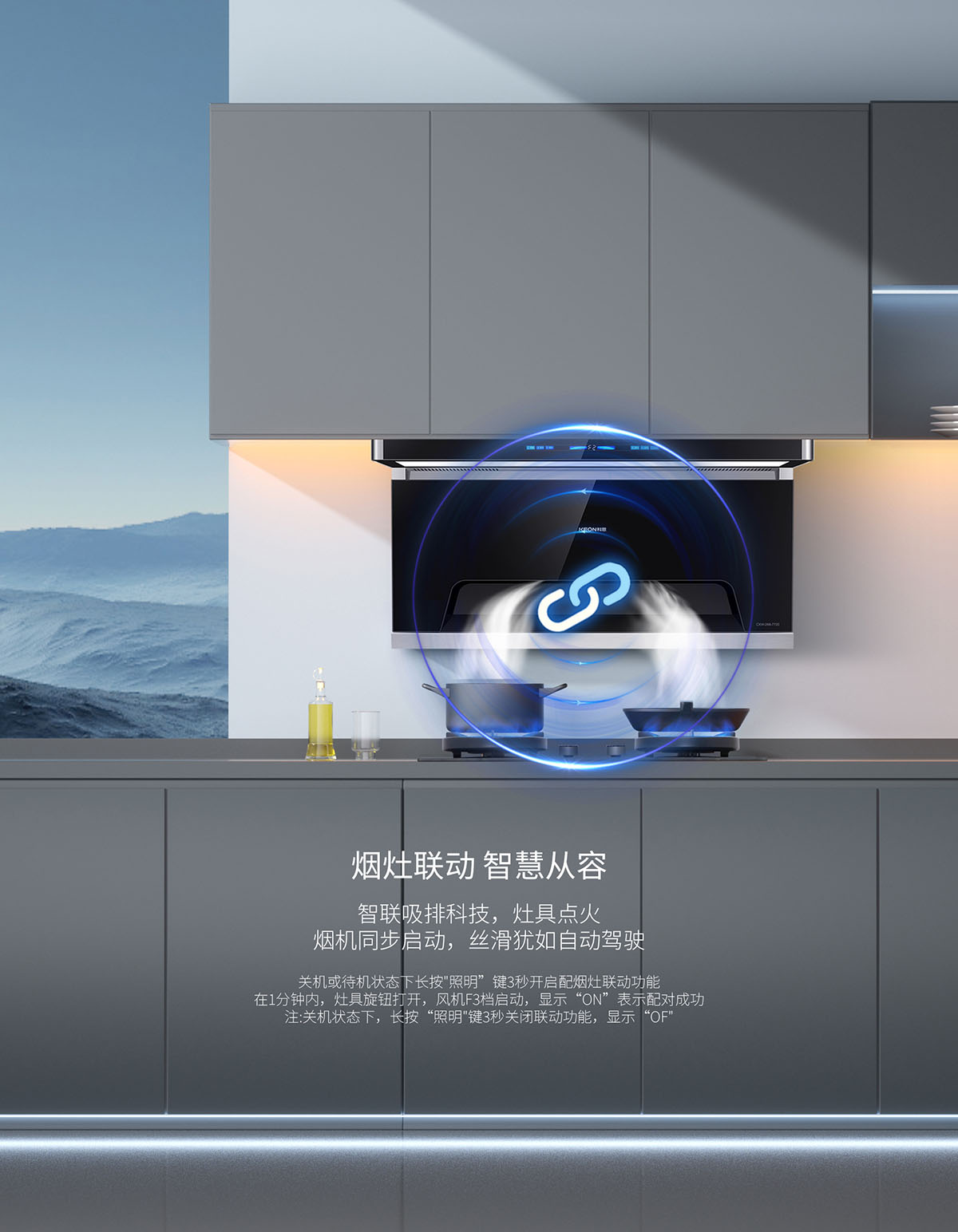 風(fēng)隨火啟,煙灶聯(lián)動(dòng),智慧從容,智聯(lián)吸排科技