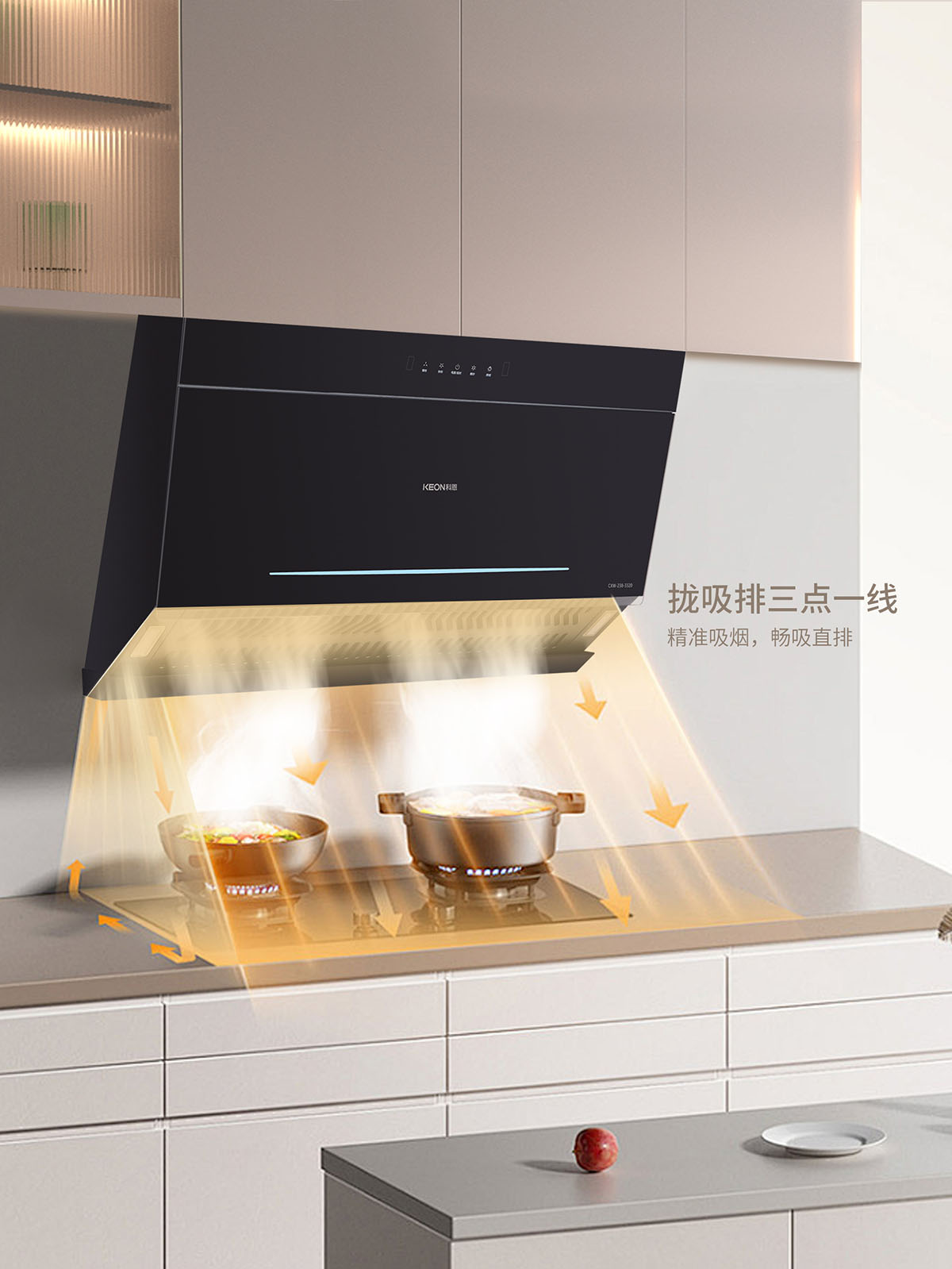 895MM寬屏攏煙,從容應(yīng)對(duì)雙灶同烹