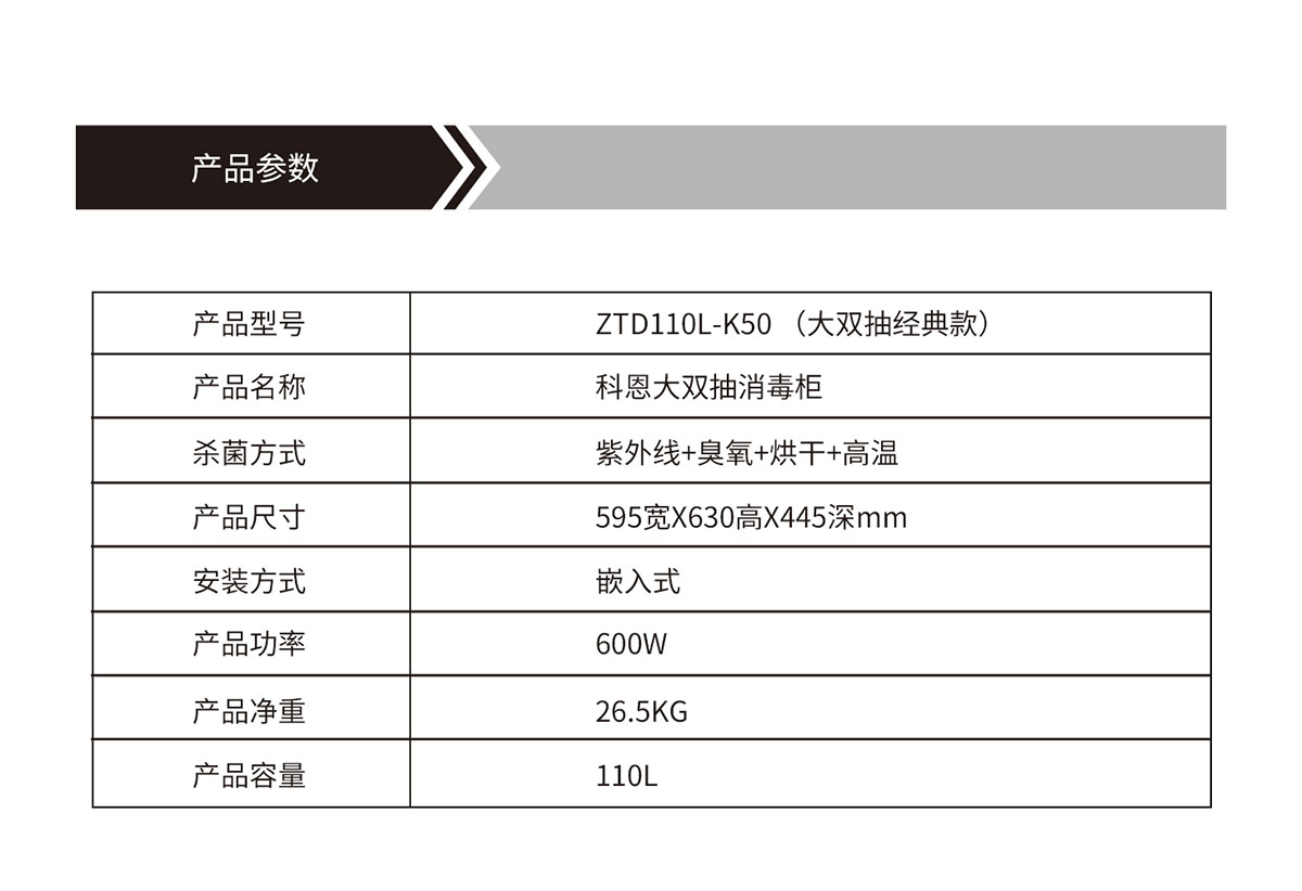 產品名稱:科恩大雙抽消毒柜