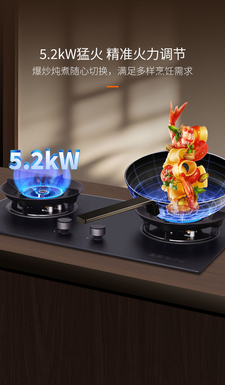 - 5.2KW猛火,精準火力調節,爆炒燉煮隨心切換